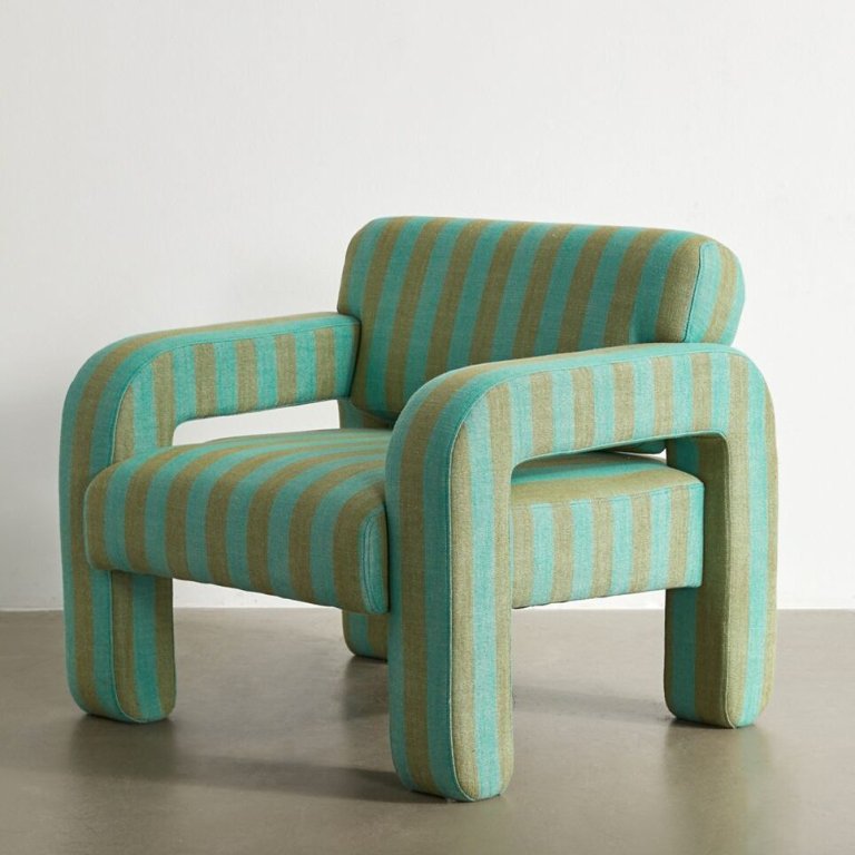 Patterned upholstery tends to lean a tad granny, but a stripe keeps things clean, modern, and graphic.