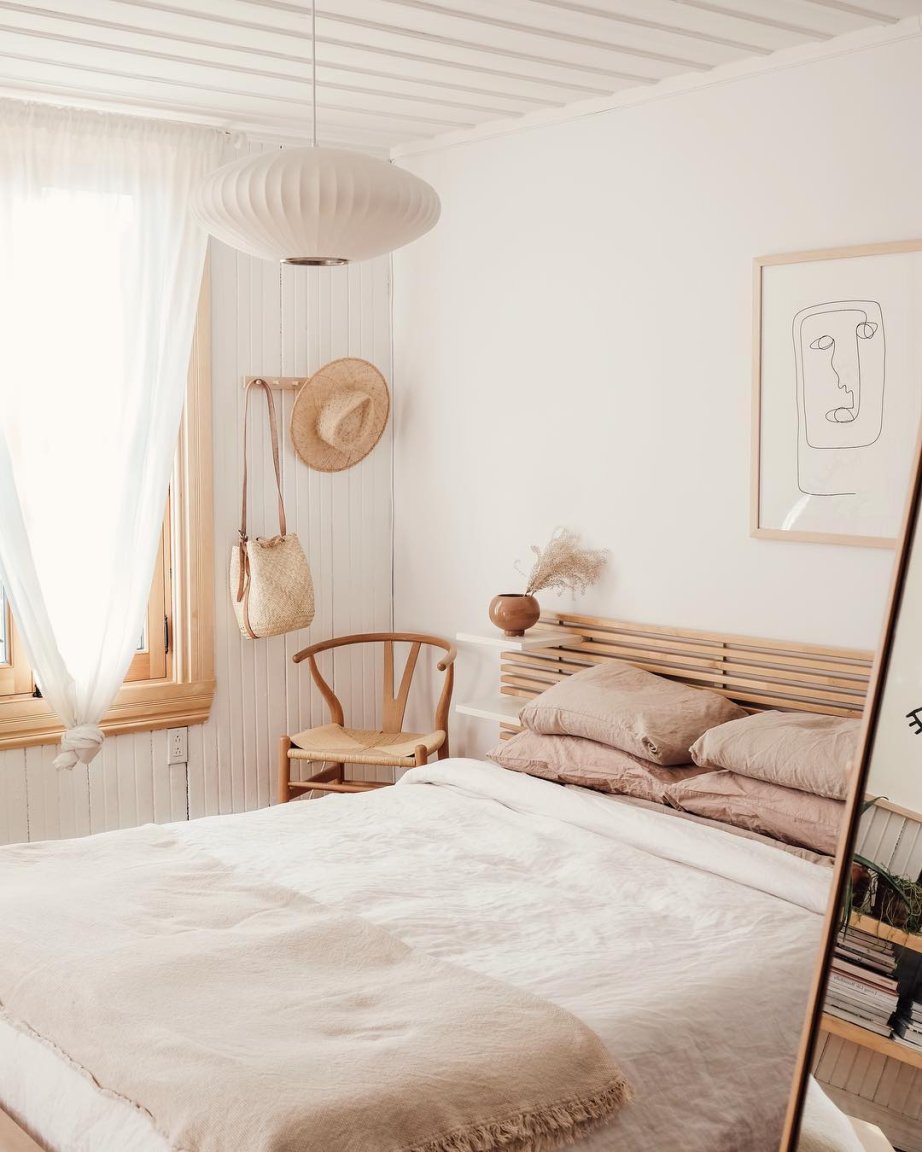 You won’t find an abundance of harsh metals in these homes. Light oak surfaces and rattan furniture are more common sightings; beige happens to often be the color of natural, untouched elements. In Mitnik-Miller’s house, there are layers of wood, linen, wool, cotton, leather, and various undyed textiles, but that’s not all. “Other types of natural materials that you could refer to are ceramics and marble and stone—things like that,” she says.