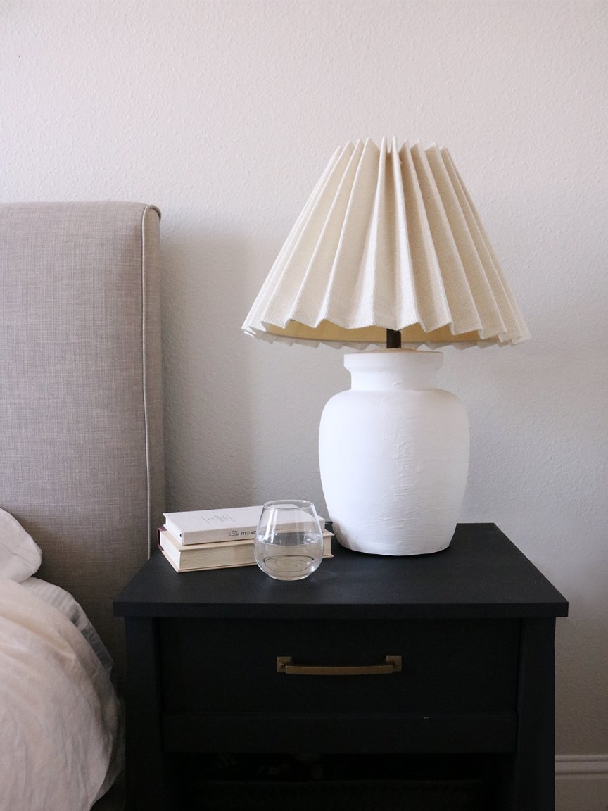 Creative Eunice Choi had no idea how difficult the search for the perfect vintage knife-pleated shades to pair with her primary bedroom’s Facebook Marketplace table lamps would be. But a month later, she still hadn’t found two A-line ones that matched and fit in her under-$100 price range. “I always loved the look of pleated shades and wanted to pull in that softness,” she explains. Being a true “if you want it done right, do it yourself” advocate, Choi decided to spruce up the shades she already owned using simple craft materials.