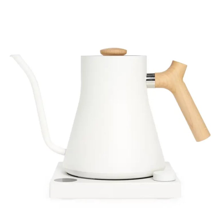Whether you’re starting your day with a fresh pour-over or cupping a bedtime tisane, your sipping experience will be next level with this slick kettle. An LCD screen helps calculate just-right temps while a precision gooseneck spout creates optimal flow.