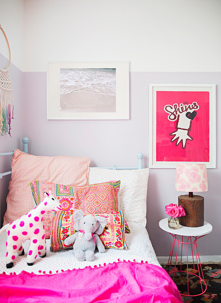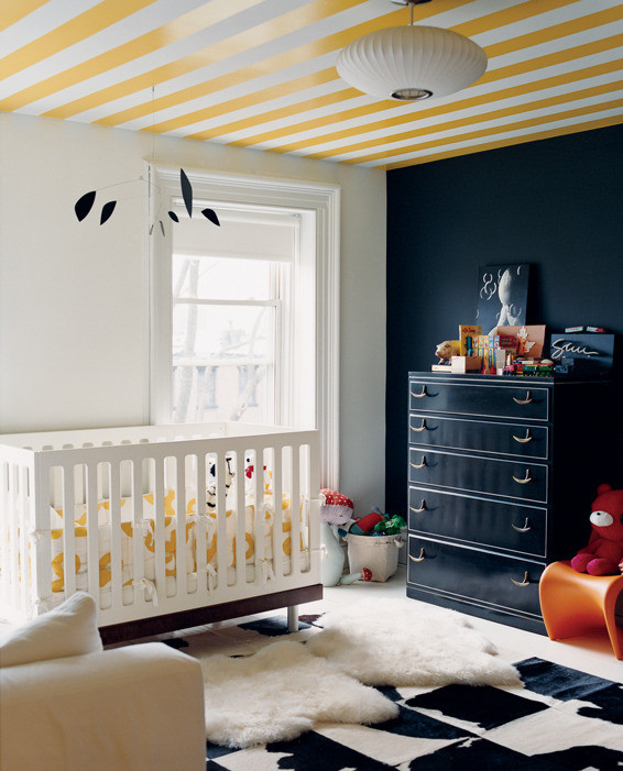 This room reminds us that decorating a child’s room needn’t be predictable. Push yourself to design a space that’s playful as well as engaging. It’s not just about pink or blue. Opt for a daring color combo with refined details. The striped ceiling is a surprising look that even a grown-up would want to recreate.