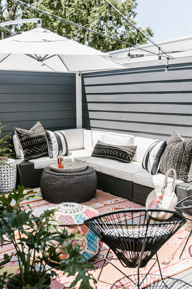 We love this space for its eclectic pattern pairings filtered by warm wood accents and an all-white surround.