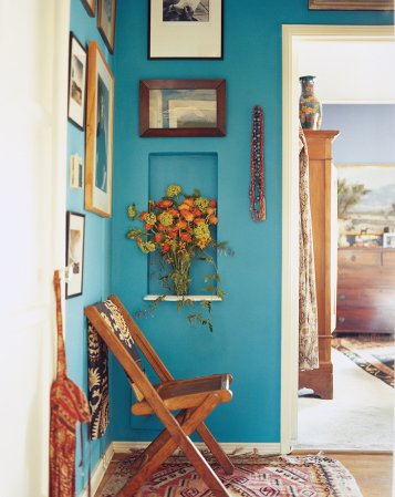 With its mix of subtle colors—including cool blues, lush yellows, and creamy neutrals—Manhattan gallery owner Blair Voltz Clarke’s art-filled mantel evokes warmth even in the middle of winter.