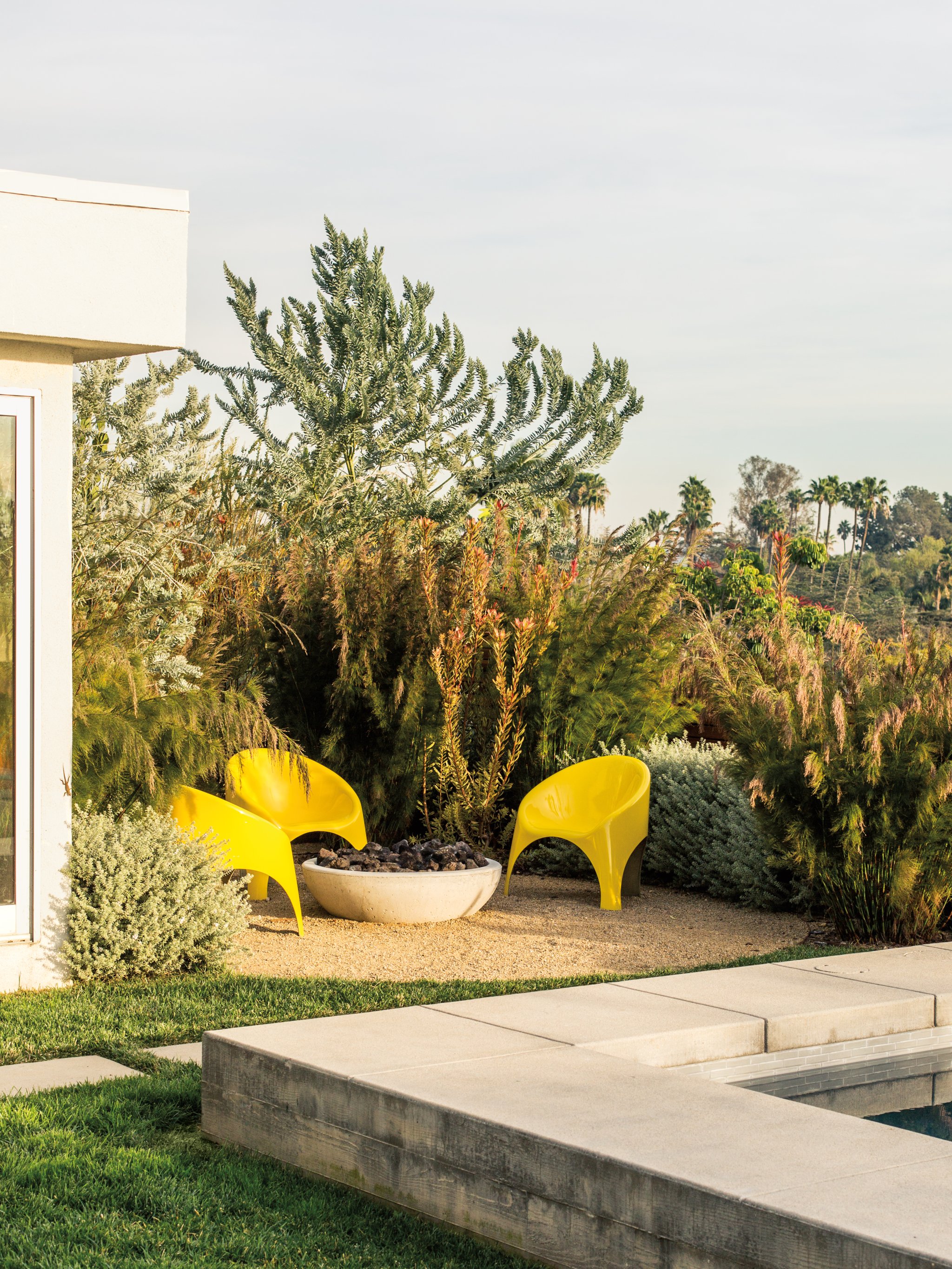 For a warm, earthy vibe, consider a weathered-steel firepit. Sure, a copper one might give off the same color, but the muted, aged effect of this material makes it decidedly more refined. Just think how serene one of these pits would look surrounded by weather-friendly rattan chairs. Sounds like paradise.
