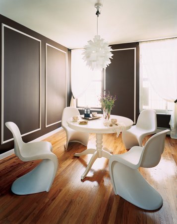 Take a bold color down a notch by adding a contrasting neutral to the wall. Clean lines add dimension and sophistication, which takes the focus away from toys and other distracting elements of a busy life.