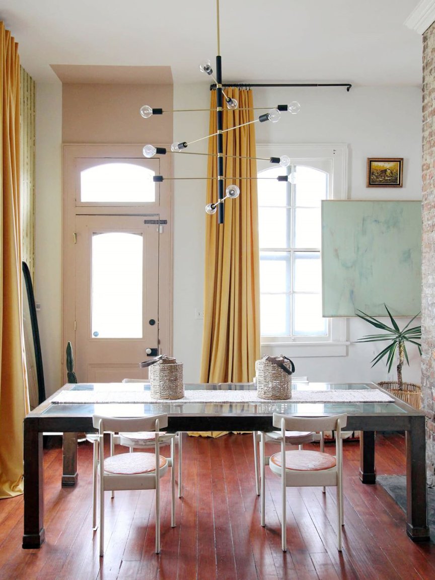 The idea comes courtesy of designer and DIY pro (remember this color-blocked floor?) Liz Kamarul. “I love pink, but our whole living room was already a different shade and I didn’t want to go overboard, so I opted for an accent hue,” explains Kamarul. Besides being innovative, the treatment also involves some visual trickery—the lines draw your eye up, making the ceiling seem taller.