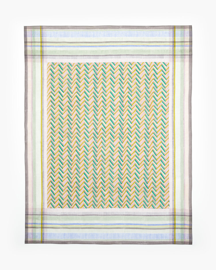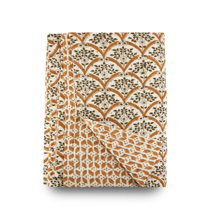 Zellweger upcycles the designs of the artisans she adores that came before her, drawing on heritage prints from the 1960s and ’70s. She believes much of block printing’s recent popularity stems from the ability to mix and match classics with the latest designs. “Block printing creates statement pieces that are timelessly striking, and mixing prints generates newness,” she says. Her reversible blankets and juxtaposing color blends of soft tans and hot pinks marry classic and contemporary design seamlessly.