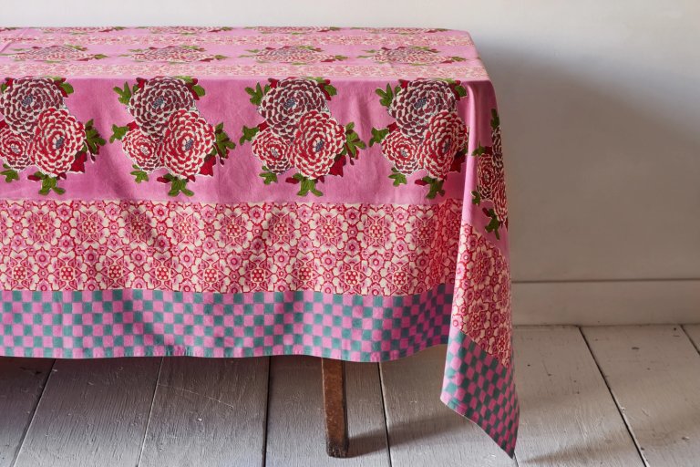Hard to miss given their vibrance, intricate floral block prints are suddenly sprouting up everywhere. In recent weeks, the style has steadily shown up in everything from tablecloths to stationery, and at stores like Nickey Kehoe in Los Angeles and November 19 in New York. And while the technique dates back almost 4,500 years, there’s a movement of international designers—from Serena Dugan to Schumacher with its recent Jacaranda collection—that are giving the heritage design a 21st-century twist.