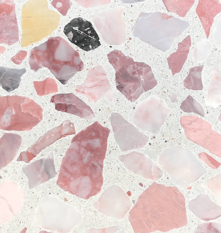 To maximize storage and square footage, she designed a custom double vanity and added plenty of shelving, hooks, and towel bars. But the transformation really took place in the standout finishes she chose: a pink pavé marble wall that resembles terrazzo, Kit Kat tiling, blush penny-round tiles, and rosé-colored bathroom sinks. Here’s how Bradley got it done.