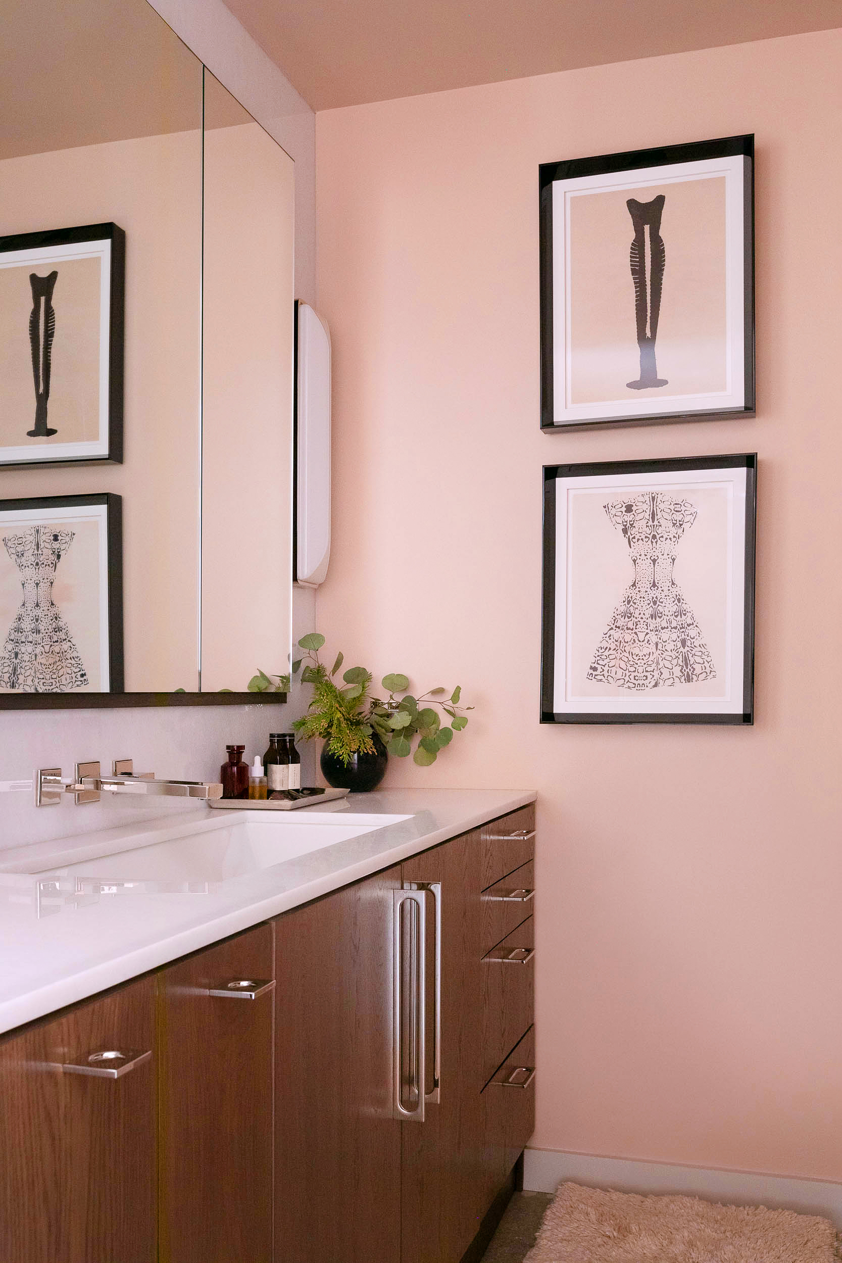 You would think Kim Culmone’s pink bathroom was directly inspired by her job. If you were Mattel’s senior vice president and global head of design for Barbie, you’d feel contractually obligated to embrace the color, right? But Culmone’s decision to paint her space’s walls in Farrow & Ball’s Setting Plaster and frame the shower with blush tile surprisingly had nothing to do with the iconic doll, despite what it looks like. “We just wanted it to feel really sexy,” says Culmone’s interior designer who, ironically, is named Barbie Palomino. “I’m sure those shades were in her mind subconsciously, but she requested something monochromatic and elegant.”