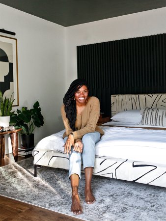 Caroline’s aesthetic had evolved considerably since she last decorated her bedroom. She wanted something that felt richer, more intentional, and more sophisticated—but something that still incorporated her love of color and irreverent accents.