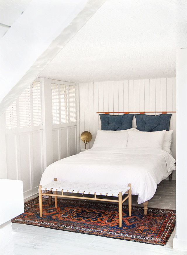 Stunning bedroom inspo and an ultra-clever DIY all in one. Could we ask for anything more? Interior designer Sarah Sherman Samuel crafted a seriously chic headboard to elevate the simplicity of this A-frame cabin.