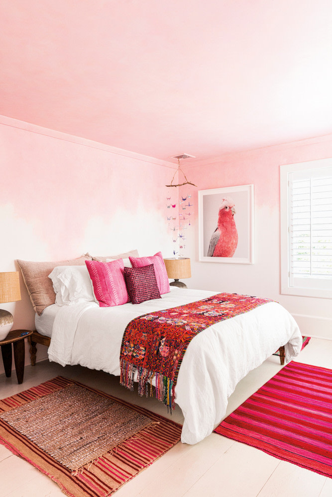 Leave it to this colorful Connecticut home to inspire some serious room envy and make a case for painting our bedroom walls in a gradient pink. The wide array of vibrant magenta textiles double down on the happy hue.