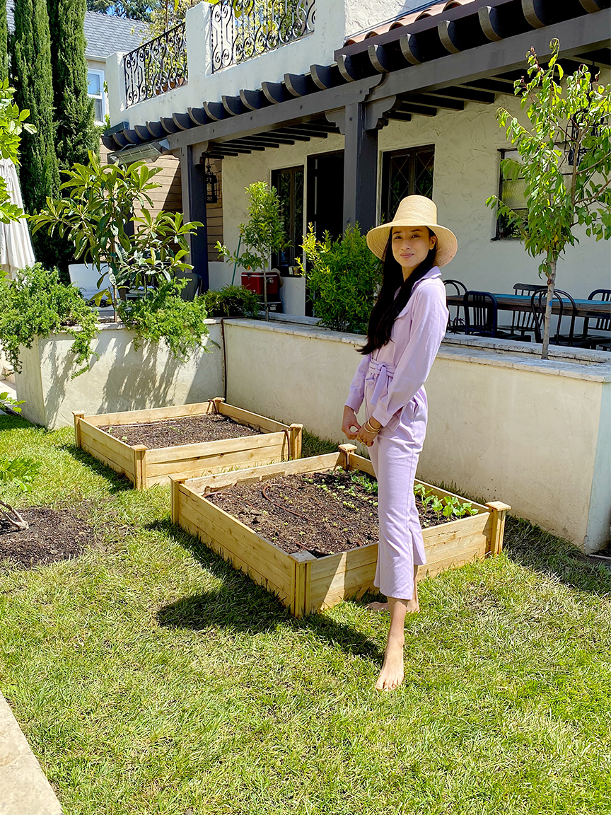 I got kits for the beds because I wanted to put them together quickly—there are a lot of great ones online. I assembled them in half an hour. Shannon [Lai] mapped out my plot plan. I have tomatoes, parsley, basil, cilantro, dill, peppers, cucumbers, cabbage, kale, beets, carrots, and radishes.