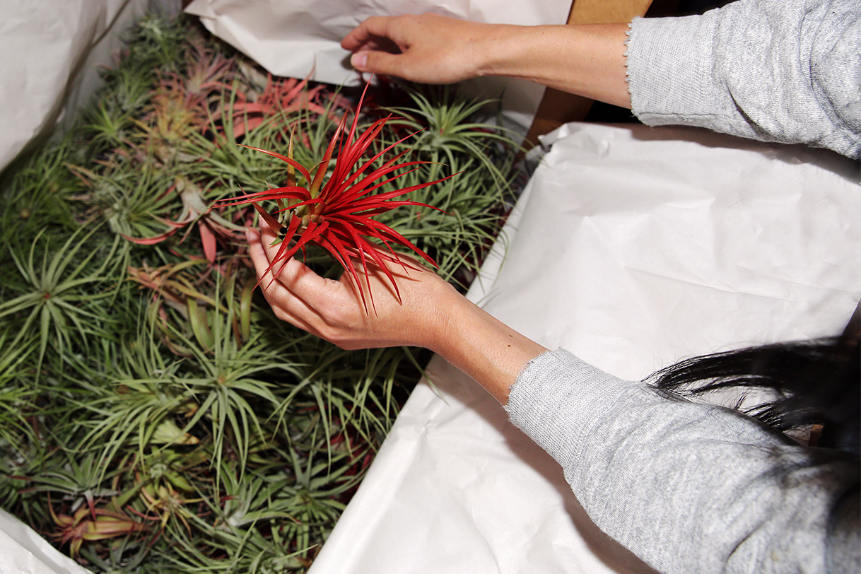AIR PLANT Air plants are as loved as they are misunderstood. “There’s a lot of misinformation out there about how they should be taken care of,” explains Gully. He says they don’t work with any soil mediums—“You could technically add some to them, but you would just need something like an orchid mix,” he clarifies—and they’re always going to do better in a bright, ambient-lit location versus direct sun or low light. Watering air plants means soaking them: “Dunk them in filtered water for five minutes, or up to an hour for the really big ones, then let them dry upside down,” says Gully. Lee has them sprinkled throughout her apartment: “They’re so versatile because you can plop them anywhere!”