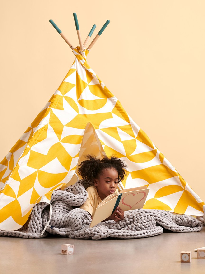 Bearaby, the female-founded sustainable weighted blanket company, has partnered with Pottery Barn Kids to launch Nappling, a throw designed specifically for children ages 4 to 14 to improve their sleep cycles and help them relax. Similar to the anxiety-reducing picks that have been popular with adults, this eight-pound option (available in a dark blue, light gray, and rosy pink) applies just enough pressure to help kids fall and stay asleep. It essentially makes them feel like they’re being hugged or swaddled all night long.