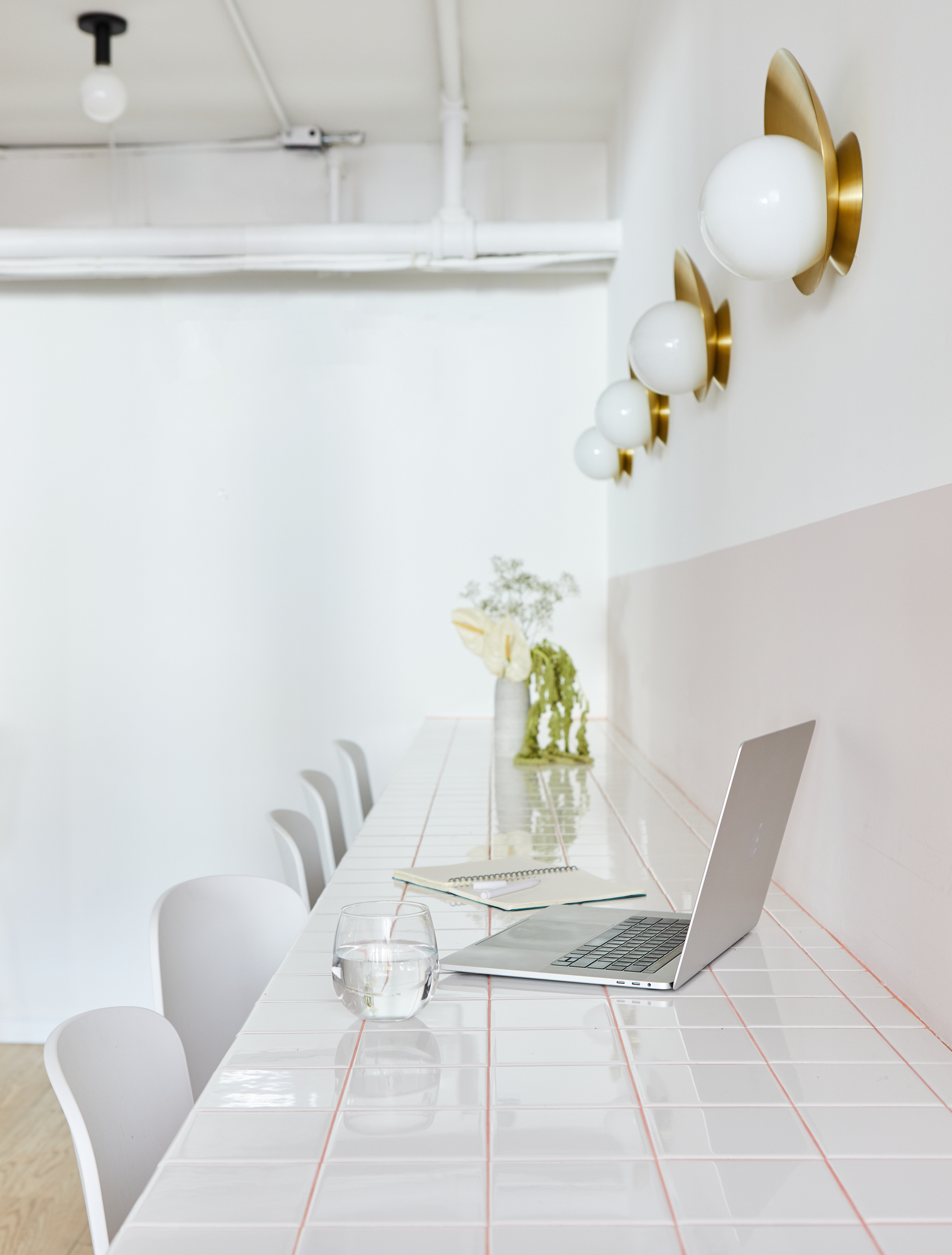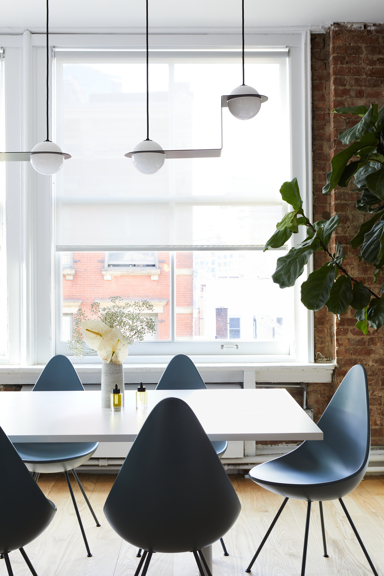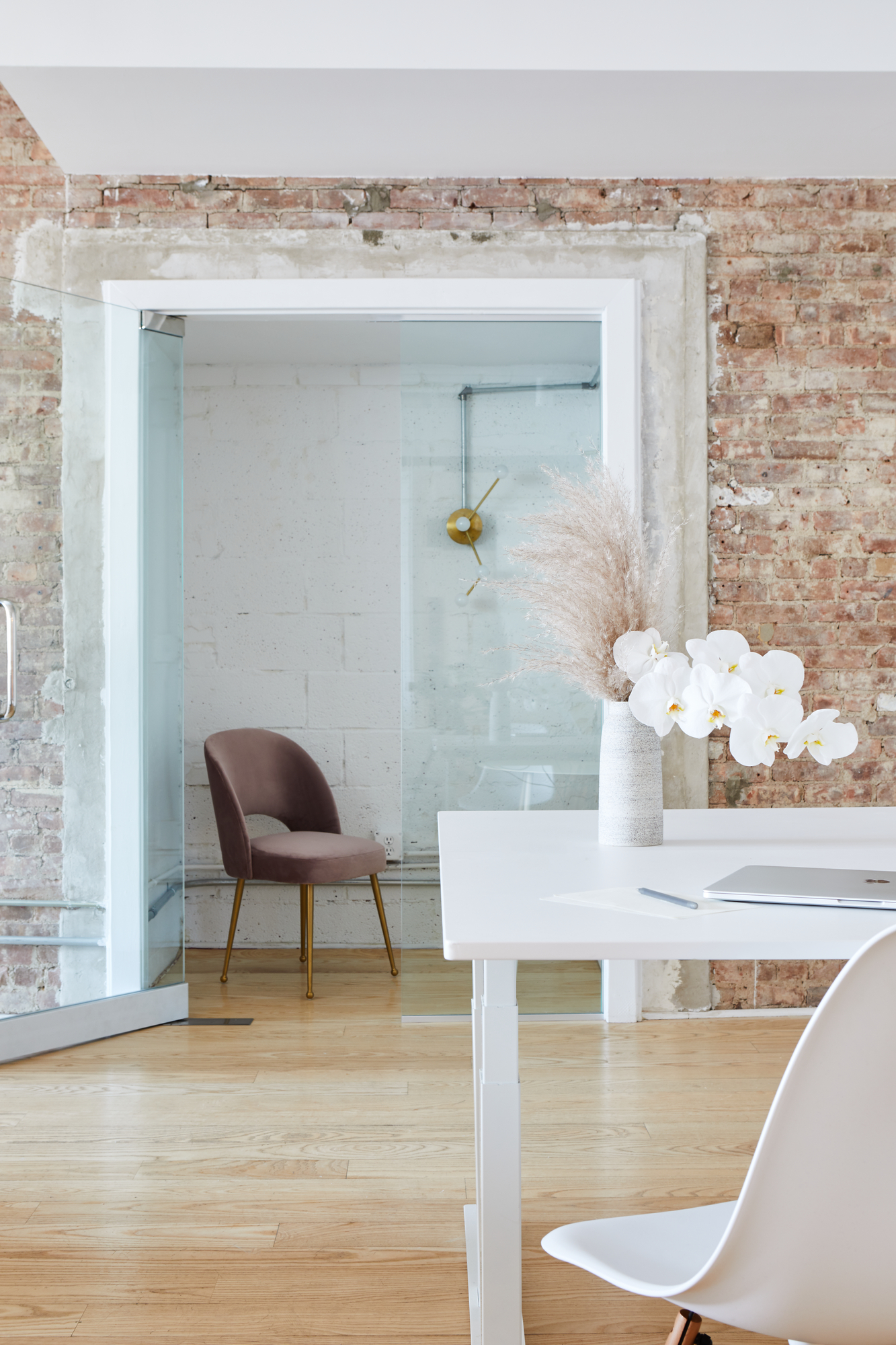 Thus, it only seems fitting that the startup’s NYC office reflects its made-to-order motto. Part office, part showroom, and part salon, Prose recently tasked Homepolish designer Tina Rich to turn their SoHo workspace into a breezy beauty paradise.