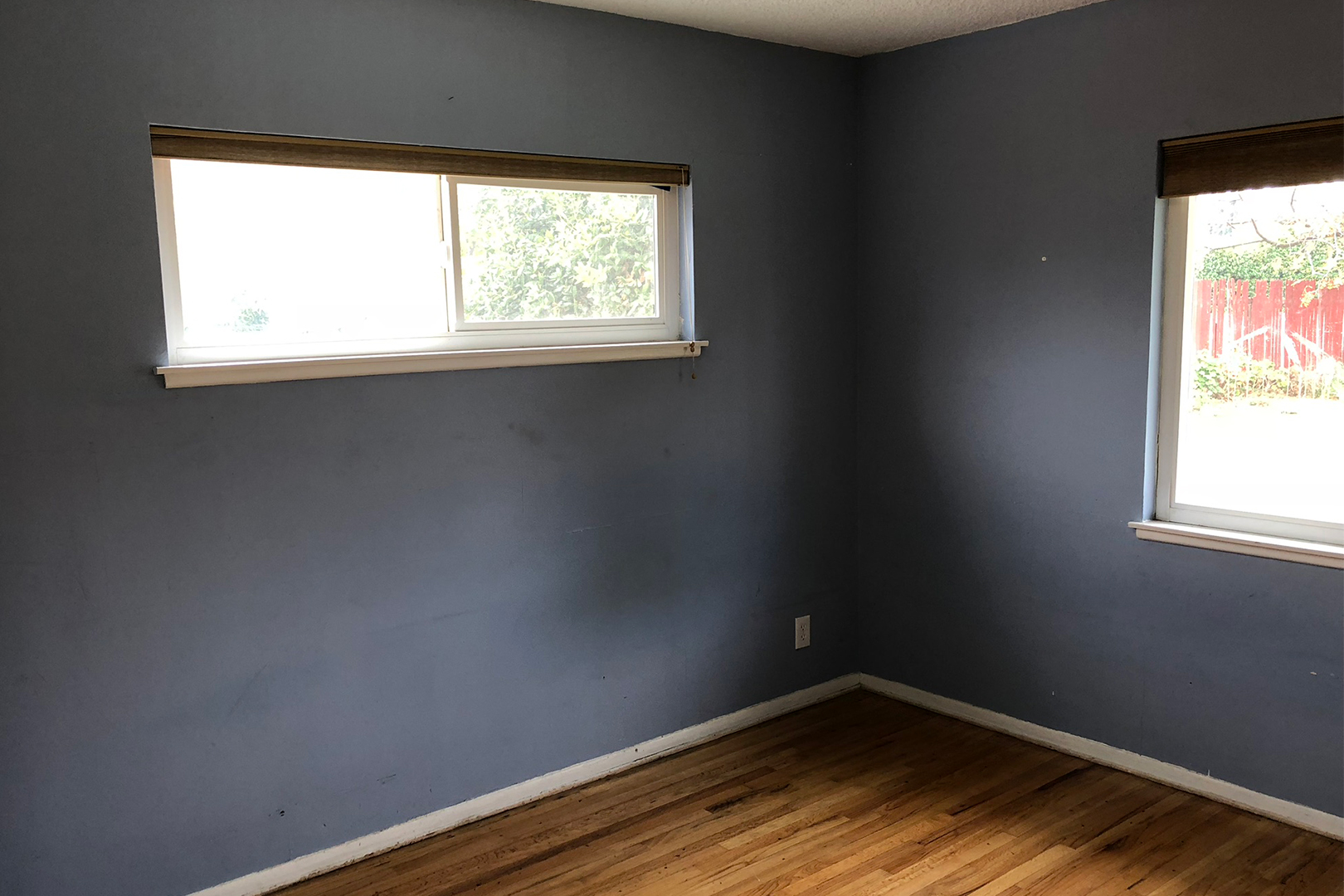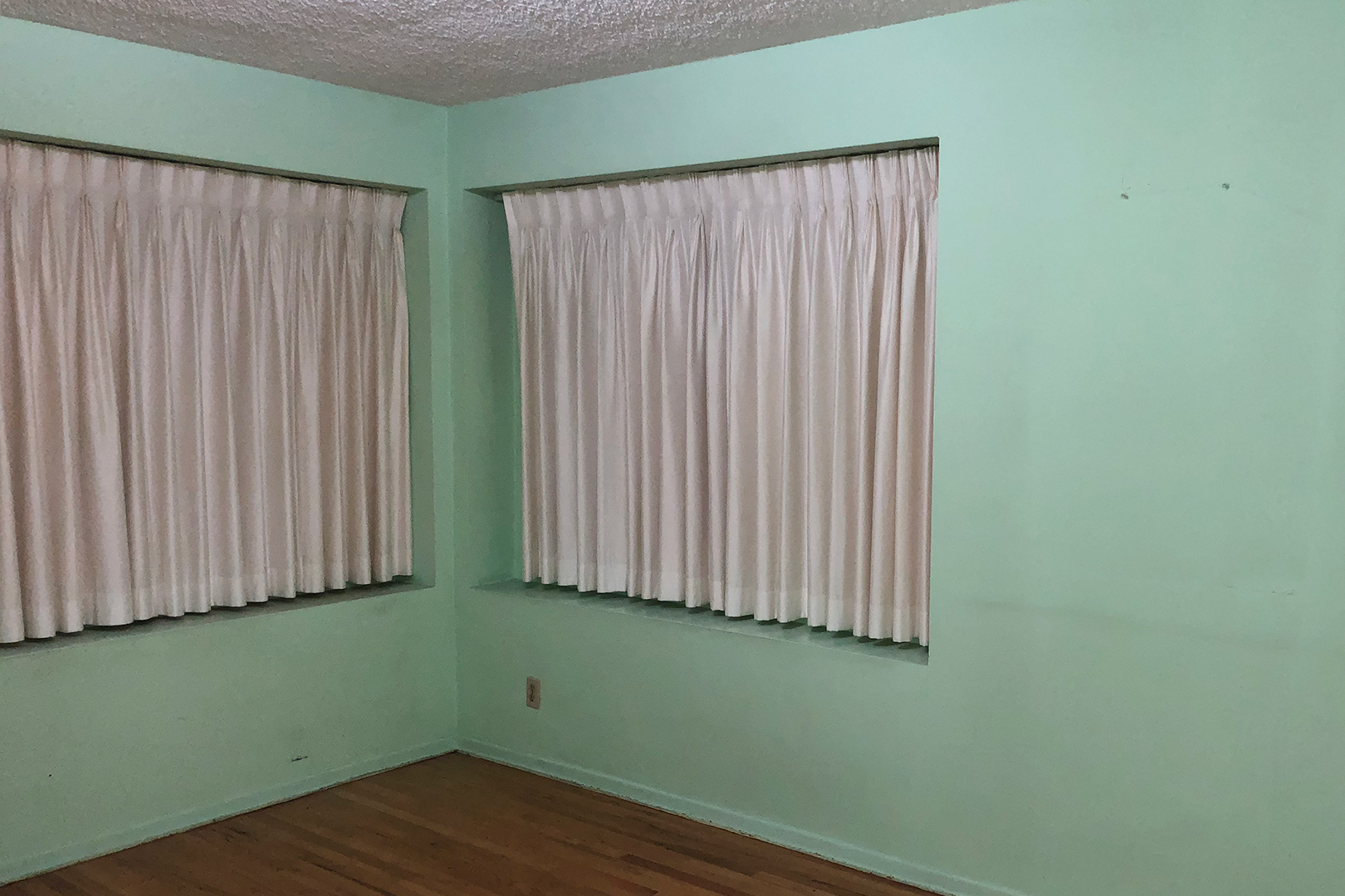 Burgos got lucky when they lifted up the greenish brown wall-to-wall carpeting in the living room and discovered the original hardwood flooring underneath (circa 1958). Instead of replacing the material with a more modern option like wide-plank oak, she simply buffed it so it matched the tones of the planks in the bedrooms and dining room, where she also shined up the original window shutters.