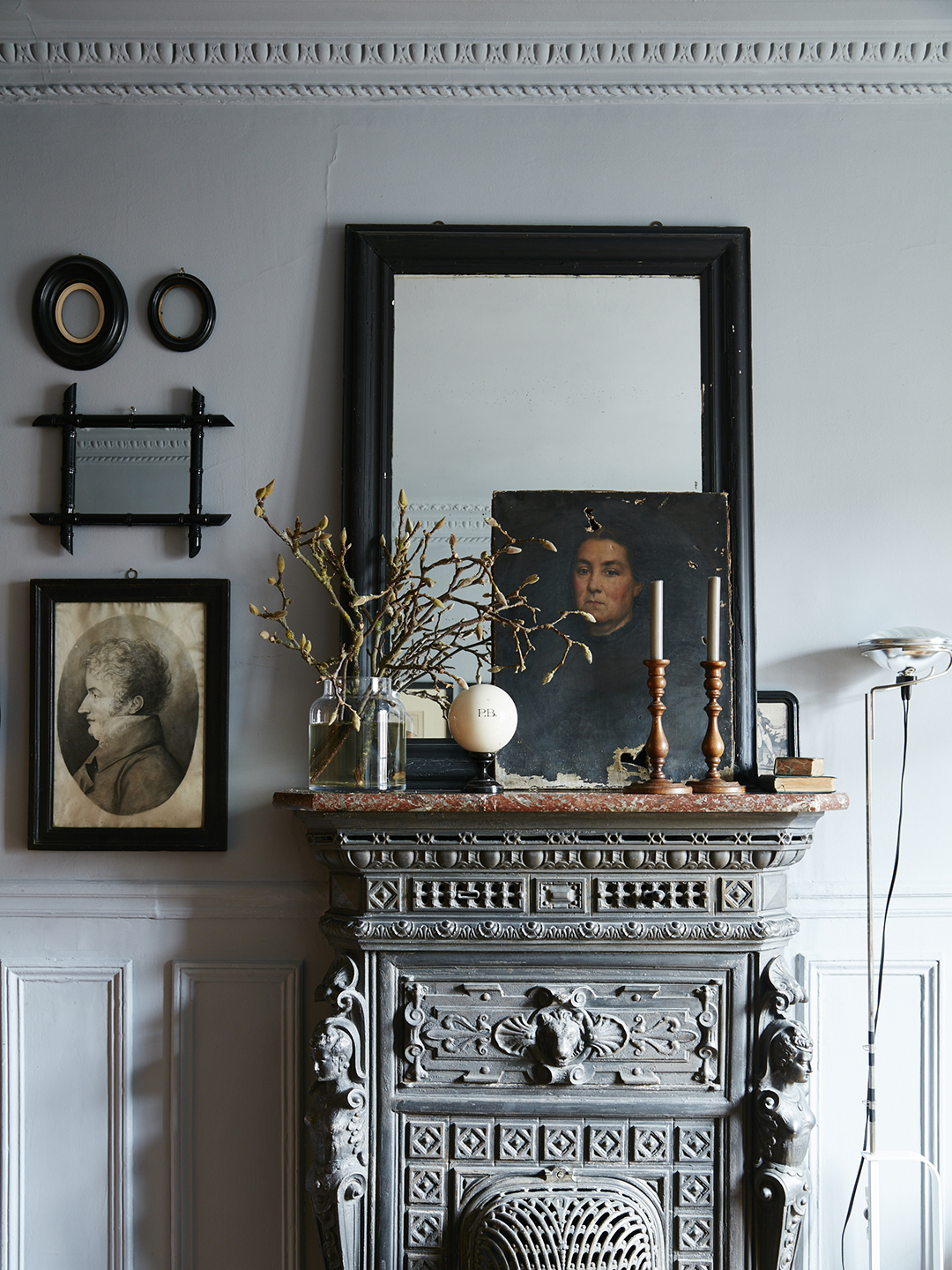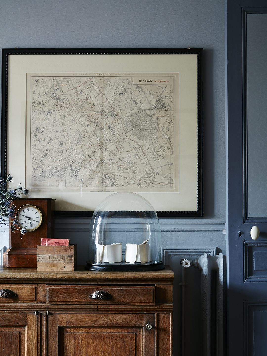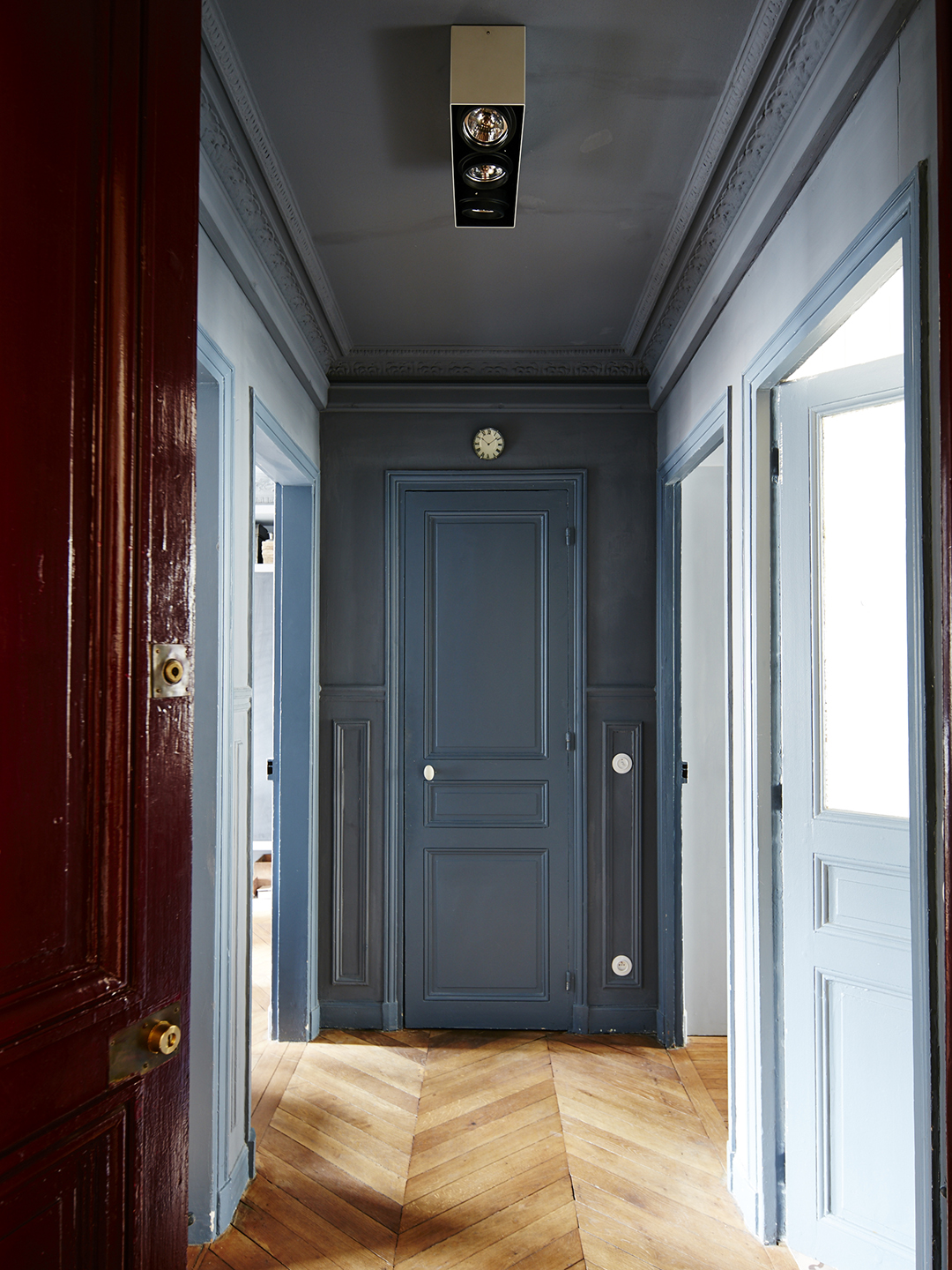 That idea is stylishly put into practice at their Paris apartment, where a palette of misty blue-grays draws inspiration from the zinc roofs and bistro counters of their adopted city, as well as the light blue in the interiors of Montmartre’s Hôtel Particulier and Brasserie à L’Ancienne.