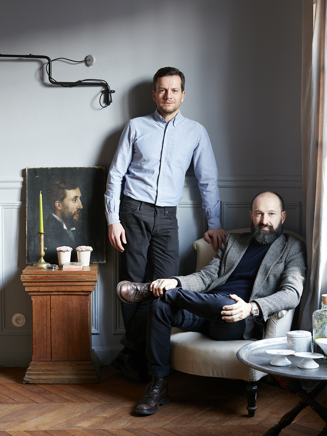 Their walk-up apartment in Paris’s verdant 12th Arrondissement gives the sense of an exacting Italian modernist inhabiting a painter’s studio from the Belle Époque. (Born in Milan, Badesco’s French grandmother instilled in him a love of Parisian style.) That culturally fluid, ancient-meets-modern aesthetic permeates most of their creative projects, including residential renovations, shop interiors for the natural beauty brand L’Erbolario and Danish fashion house Sand—as well as their own much-coveted store, Raw.