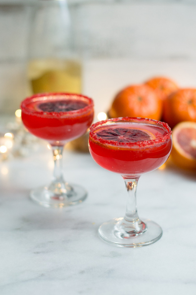 You just need three ingredients to make this alluring winter citrus libation by Superman Cooks. Give some oomph to the simple recipe by adding a red sugar rim to the glass.