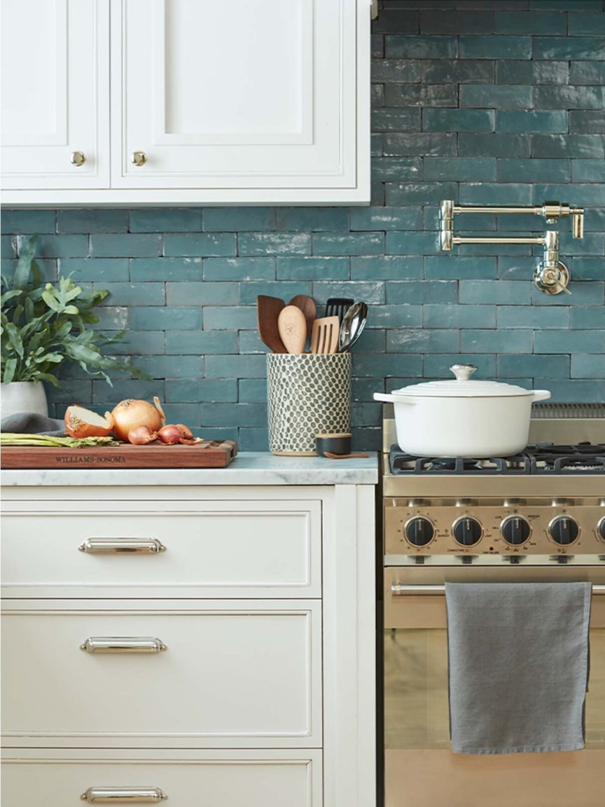 You know you’ve made it when your kitchen has a pot filler next to the stove and lugging heavy saucepans of pasta water to and from the sink is a distant memory. This one has a cross handle that’s just the slightest bit nautical.