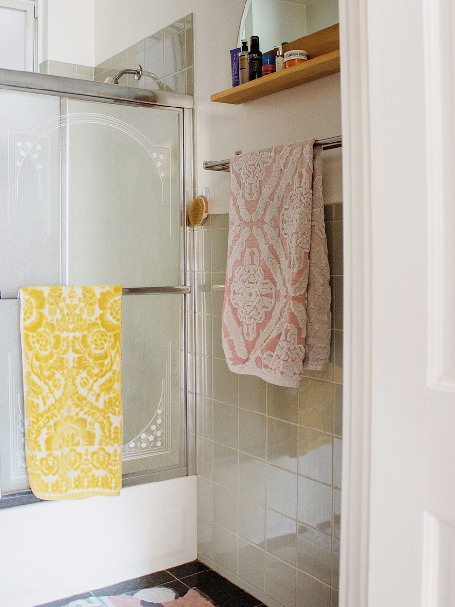 Reserve Home founder Mallory Fletchall’s Brooklyn apartment is the epitome of modern. Her kitchen boasts streamlined blue-green cabinetry and hand-painted geometric floor tiles, while every corner of the living room is filled with color. But for the longest time, the bathroom was stuck in a different era—“it was very ’90s,” recalls Fletchall. The sliding-glass shower door had floral etchings, and the bulky medicine cabinet and vanity light made the small room feel claustrophobic. “It was far from the sanctuary where I could enjoy a bath at the end of the day,” she says.