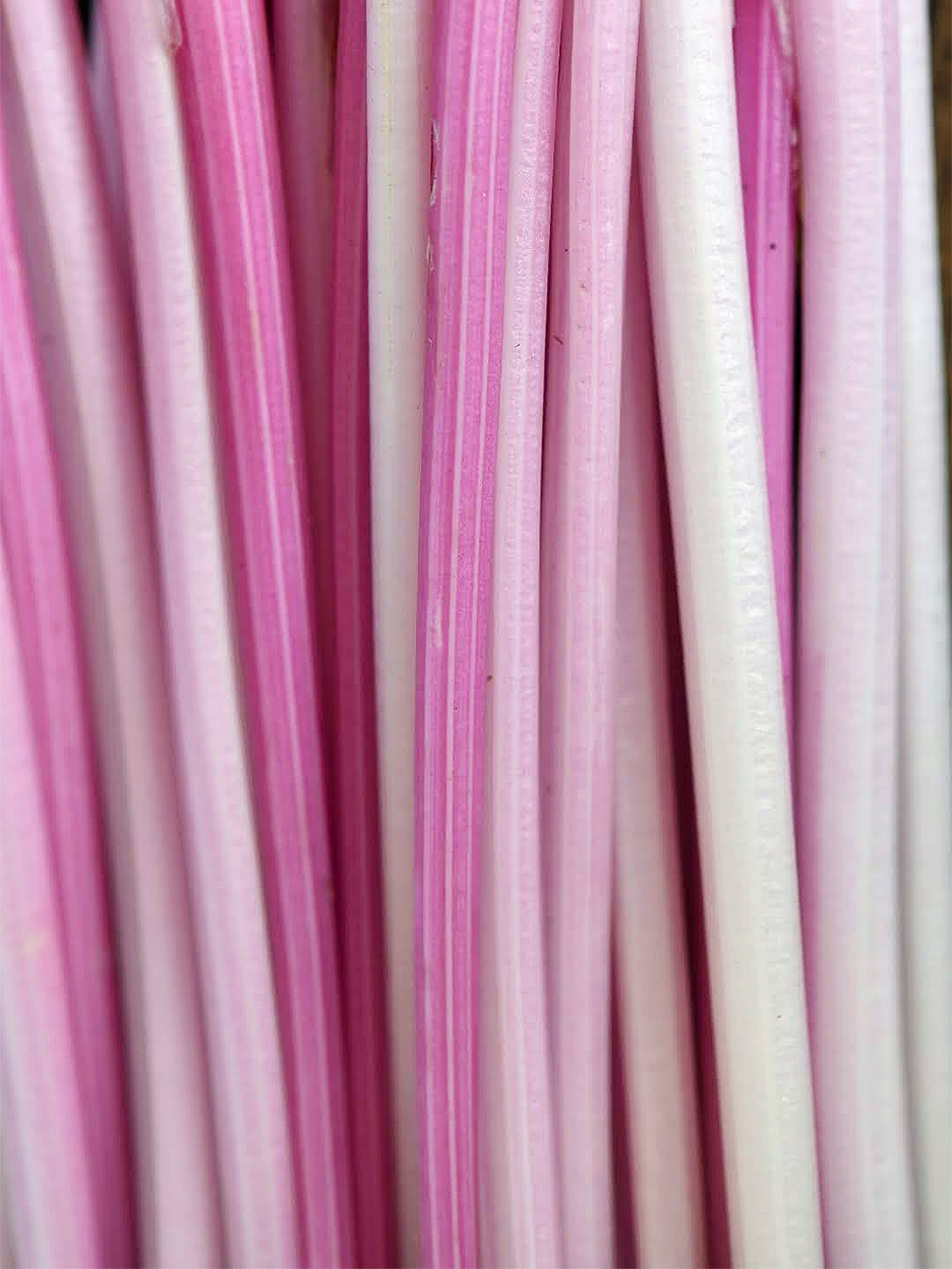 When I see something pink, I am immediately drawn to it. Lush velvet couches, status water bottles, headbands, tie-dyed sets, and…celery? Yeah, pink celery, or rose celery as Girl & Dug Farm, a specialty produce farm that works with a lot of top chefs in San Marcos, California, calls it.