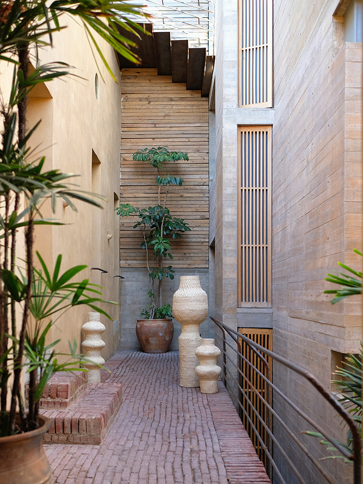 For Reyes, openness and light are of utmost importance to his creative process. “I love to see different tonalities and colors during the day, and how they change as day fades into night,” he says. On the roof, a terrace provides views of Oaxaca’s mountains and a crucial connection to nature. “I often sit for hours and work through moments of contemplation, and I have to be able to see outside—it helps me move my process along,” he adds.