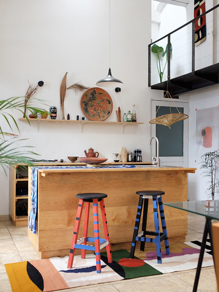 Admittedly, Reyes is always rearranging his flat-weaves and sculptures in order to get a better sense of his creations’ capabilities. “I am able to style the pieces in my interiors and see people’s interactions with them,” he explains. The live/work space also serves as a showroom, allowing visitors to enter his world and understand how they could incorporate Rrres products into their own houses, beyond the obvious. “Maybe they never thought about hanging a rug high up on a wall, almost like a painting,” notes Reyes.