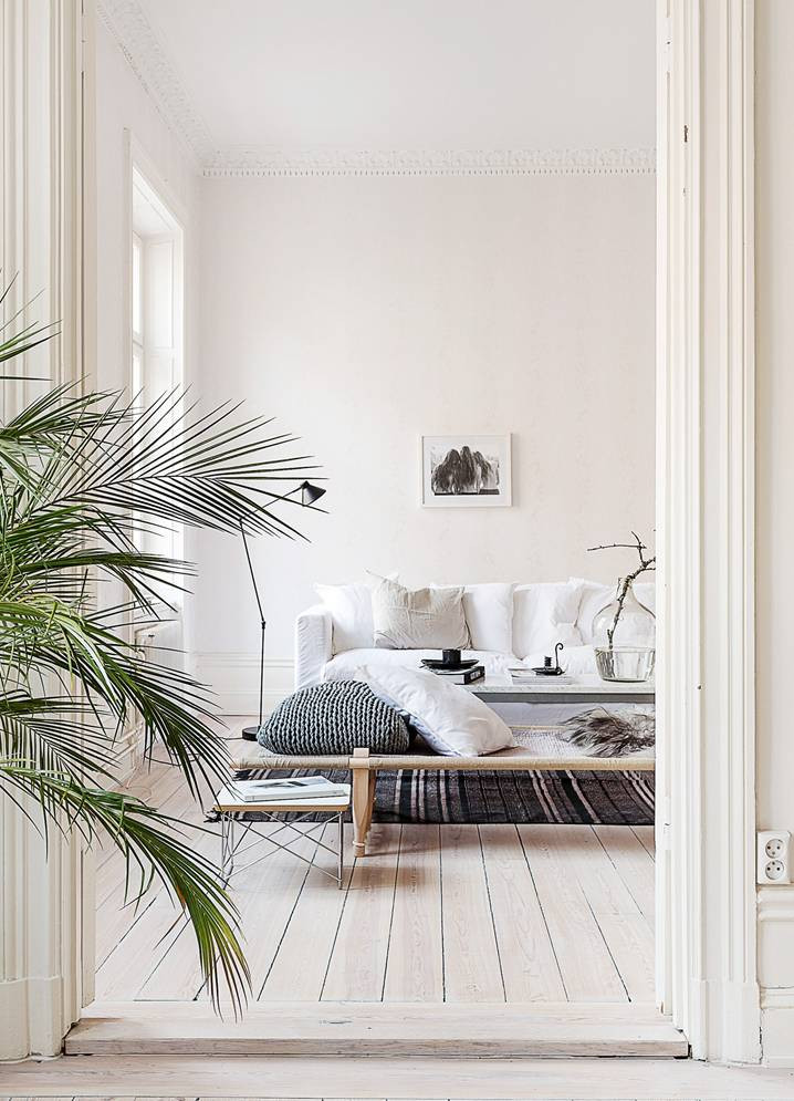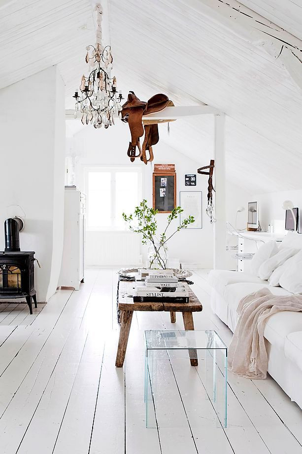 Fill a whitewashed space with an assortment of textured accents and organic details for an effortlessly rustic feel.