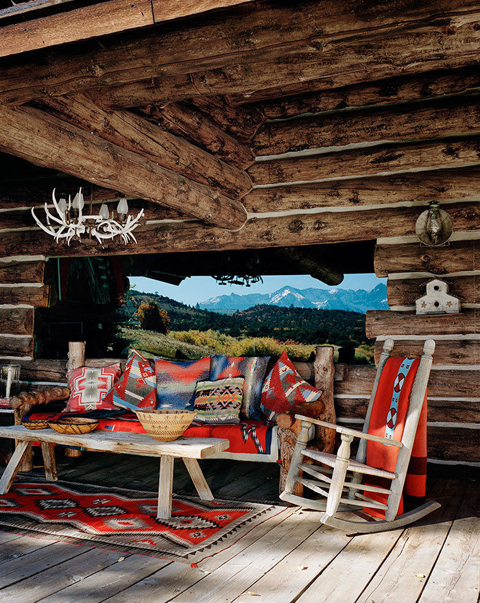 A rustic cottage situated within an alpine locale is fully decked with an abundance of pattern.