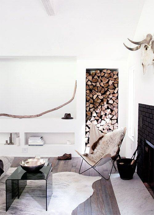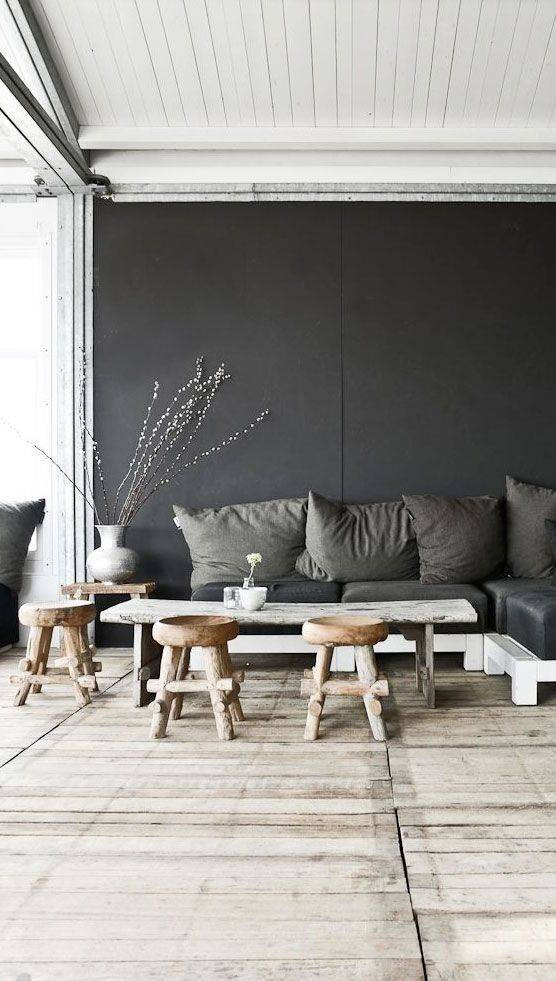 Rustic meets modern in this stunning living room of a monochromatic scheme.