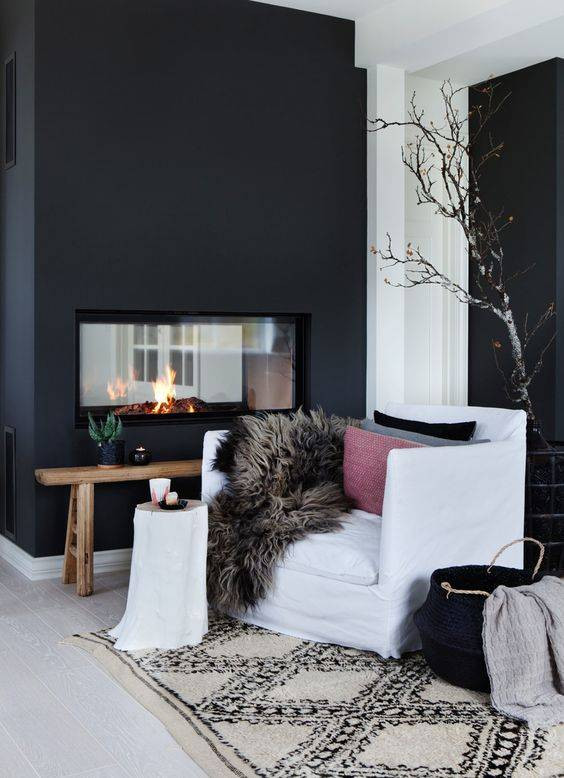 Create a cozy spot by the fireplace with a comfy lounge decked with textured basics.