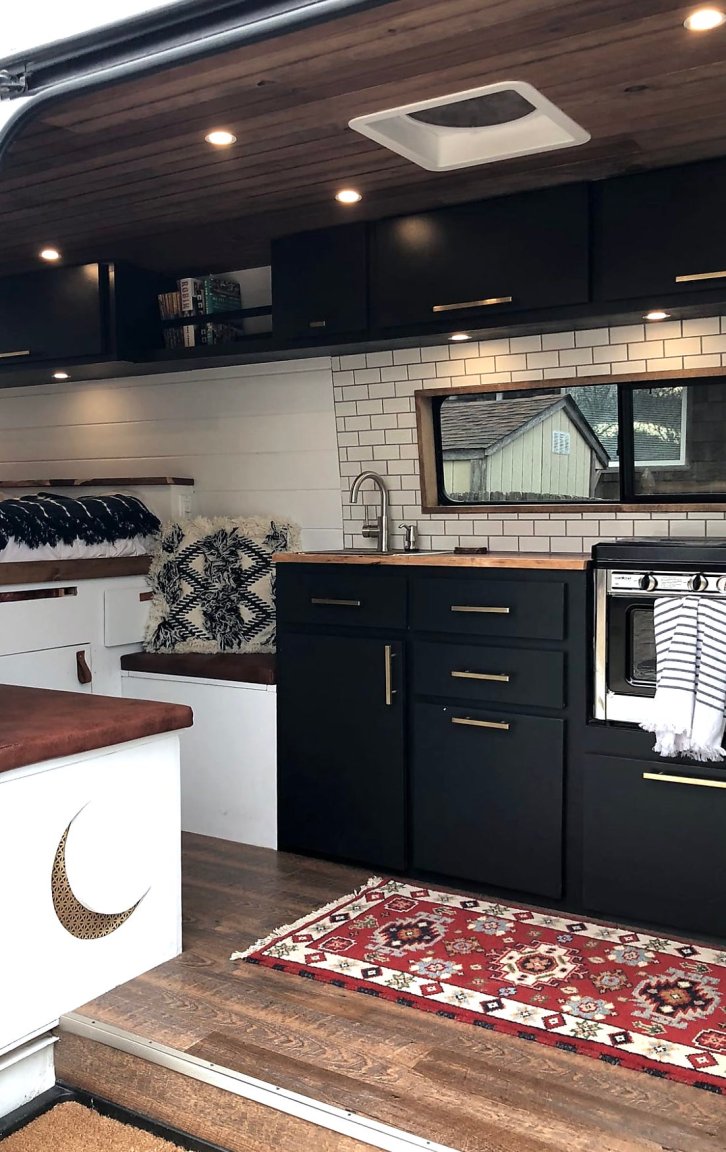 Although some RVs come with carpeting, Young prefers using rugs, as they’re easier to shake out and clean. In her travels through the western United States, she’s collected a few artisan-made ones and places them around whichever RV she’s traveling in. “Walking on a rug, especially when you’ve just woken up in the morning, is a dream,” she says.