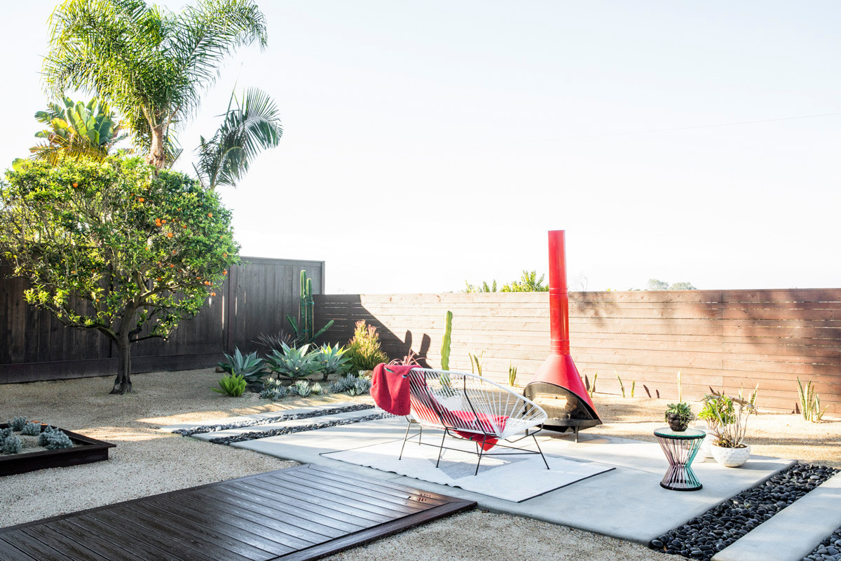 During the same time that the couple decided to expand the dining room, they also added a tiled outdoor patio and ultra-chic fire pit zone. Stylish and, more importantly, low-maintenance, her Palm Springs-inspired yard is a stunning reminder to never underestimate a grass-free landscape.