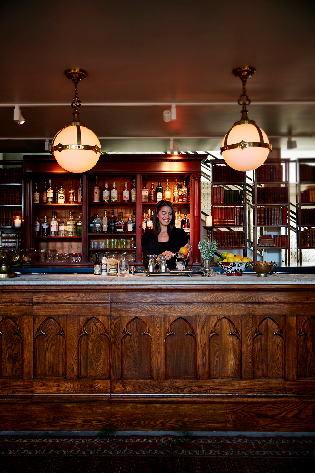 And that cocktail you were offered? It can be mixed at the main bar on the ground floor (built with gothic wood panels reclaimed from a Midwest church)—or way upstairs at the Rose Bar, a softly lit, four-seat mahogany nook off a spiral staircase next to the choir loft.