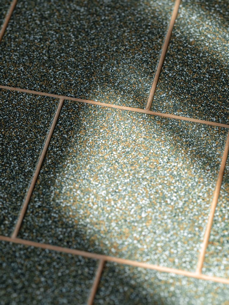 The other baths aren’t shy either: The kids’ space boasts a yellow floor and matching faucets, while another has a mix of blush and burgundy tile with bright white fixtures. Although more subdued, even the main en suite sports a dark terrazzo from Concrete Collaborative in the shower and double vanities with dramatic arched mirrors.