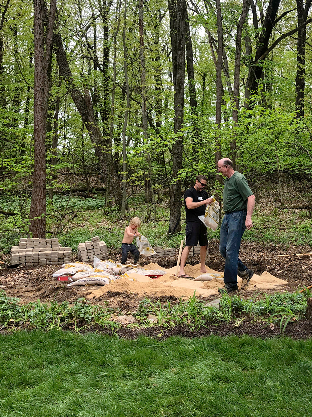 So when she relocated her family from sunny Los Angeles to her home state, a firepit was number one on her agenda. “It just feels like it’s a good place to gather and quiet down,” shares the designer. And a wooded area of her backyard was just the right space to relive her childhood memories. With the help of her dad and husband, Samuel cleared out a few trees and got to work.