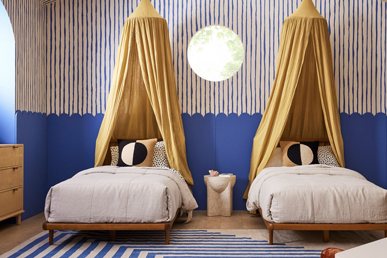 The love child of those free-flowing squiggles you’ve been seeing everywhere and the still-going-strong cottagecore trend, this year’s pattern of the moment is a delightful combination of both. The scalloped edge is back, but it has nothing to do with yesteryear’s preppy counterpart (though we do love a good frill). This fresh iteration is all about bold colors and shapes—and what better place to test it out than in an ever-evolving kid’s room?