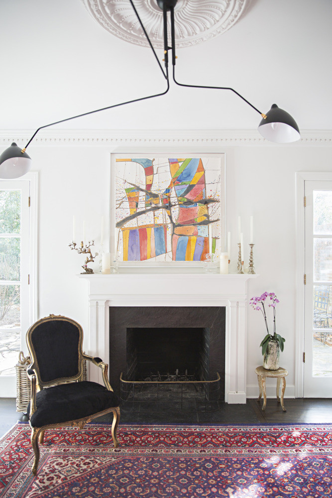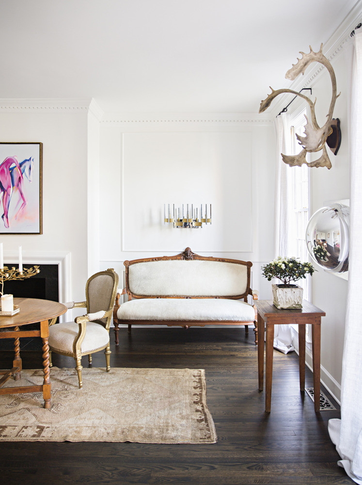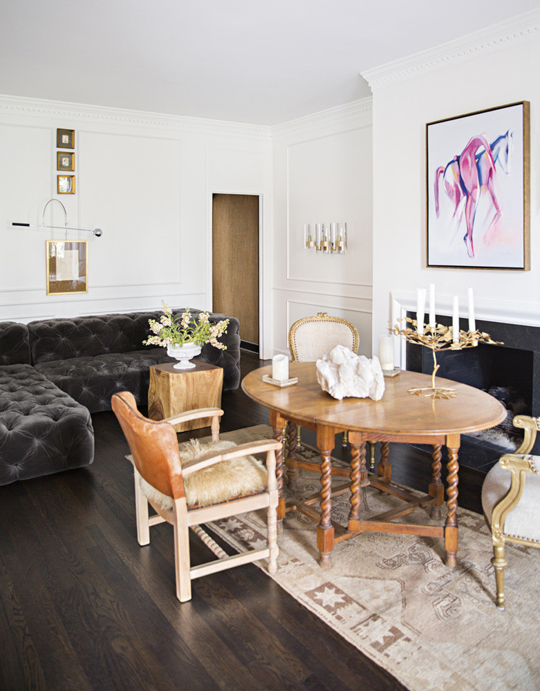The Oushak rug and gateleg table were discovered at an antiques store in Nashville.