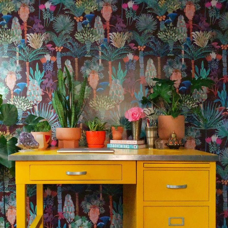 If you’re loving Gomez’s take and have a reno of your own coming up, you’re in luck. With endless unique wallpaper options to choose from, you can snag her look in no time. If you’re searching for something more understated, Calico’s hanging ivy design will transform your space into a garden, while Justina Blakeney’s “globe-trotting botanical” offers a hit of color to brighten a room.