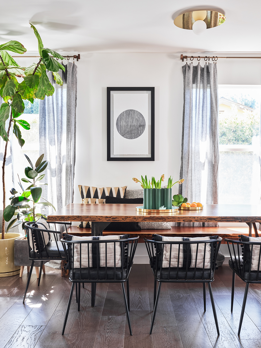 Investing in comfort helped make the flipped house feel like home, starting with a custom sofa from a local L.A. brand. It wasn’t the fabric or even the depth of the cushions that Gillespie was out to change but rather the height. “The husband is 6-feet-5, so it was a bit low,” notes the designer. “We added a couple of inches.”