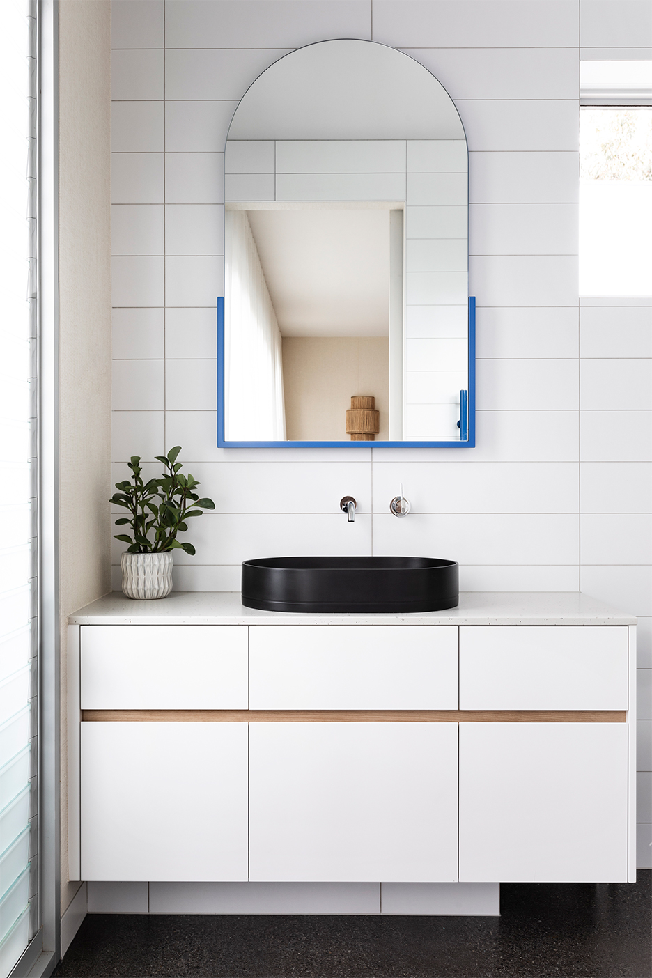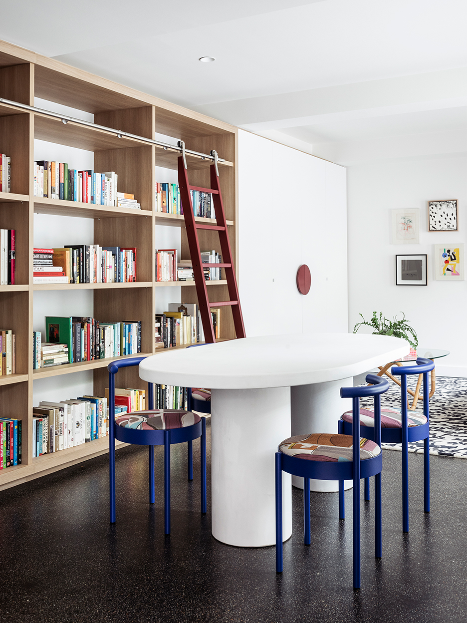 After viewing more than 35 properties in a little over a week, Mainland fell in love with an unconventional place—two homes that had been converted into a single large one—in the suburb of Armadale. “I loved the house because it was so random,” she says, laughing. There are two inner stairwells and two living rooms. But despite the ample square footage and lush garden, a significant update was in order to bring the house up to speed with her style. With the help of interior design studio Eat.Bathe.Live, Mainland renovated the existing bathrooms, added a primary en suite, polished the concrete floors, and created a dedicated library and office space.