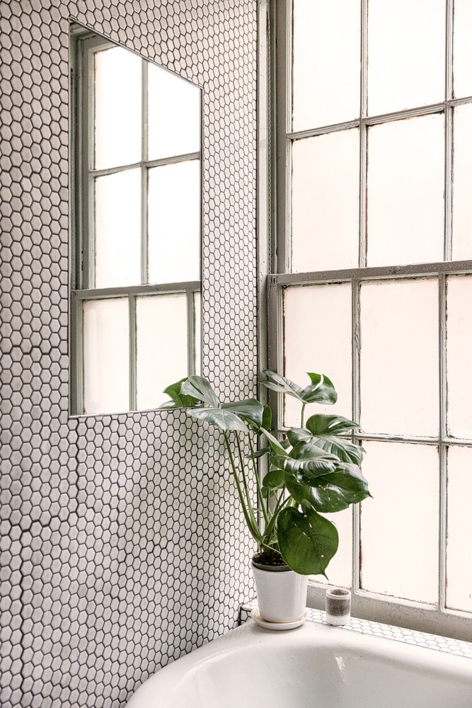 Perhaps one of the most unique features of Jones’s tiny space? Her bathtub, which sits adjacent to the kitchen and happens to be her favorite place in her home. Replacing the old standing shower, Jones opted for this vintage tub that works seamlessly with the rest of the apartment. “My friends fight over who gets to stay at my place when I leave town so they can use my tub!” Jones says. “I knew I really wanted a tub, so it’s my favorite part of the space.”