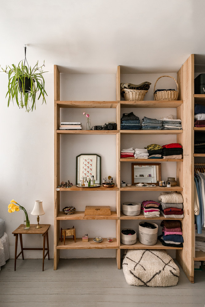 But in order to keep the stuff she does have tidy and in their place, Jones enlisted contractor Joey Ting to create custom shelving that maximizes storage and style.