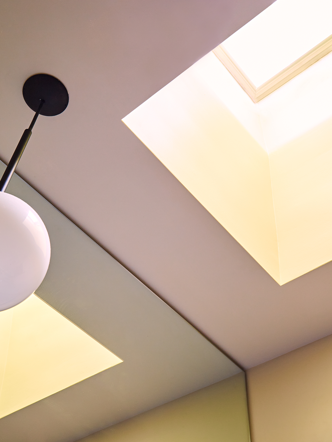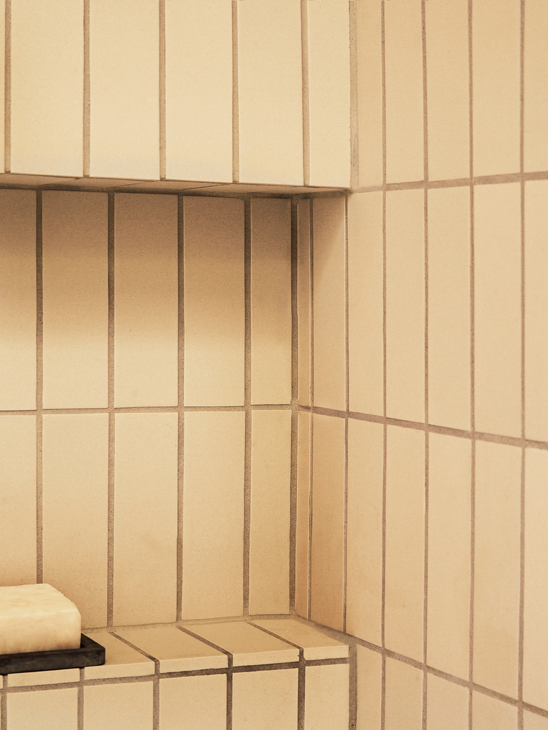 Think upward and onward, not side to side, when it comes to shower and wall tiles. The unglazed Heath tiles that now cover nearly every inch of surface area in the bathroom (the color is Natural White) lend much-needed texture, but it’s the vertically stacked bond configuration that mattered most to Yeh. “They bring your eye to the ceiling,” she notes—and to that magical skylight. You barely notice that the pair still went with a tub-shower combo (this time a streamlined glass partition takes the place of a fussy door). “Taking a shower or bath with just the recessed lighting over the tub is incredibly cozy,” she says. Bubbles optional.