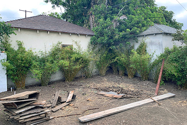 A streamlined deck and subtle roof jut-out gave the backyard much-needed dimension, while doors connecting the area to the main bedroom and family room embody that outdoor-indoor Cali lifestyle. Baer painted the existing cinder-block barrier and then added wood on top for extra privacy. “It’s a little oasis in the city now,” he says.