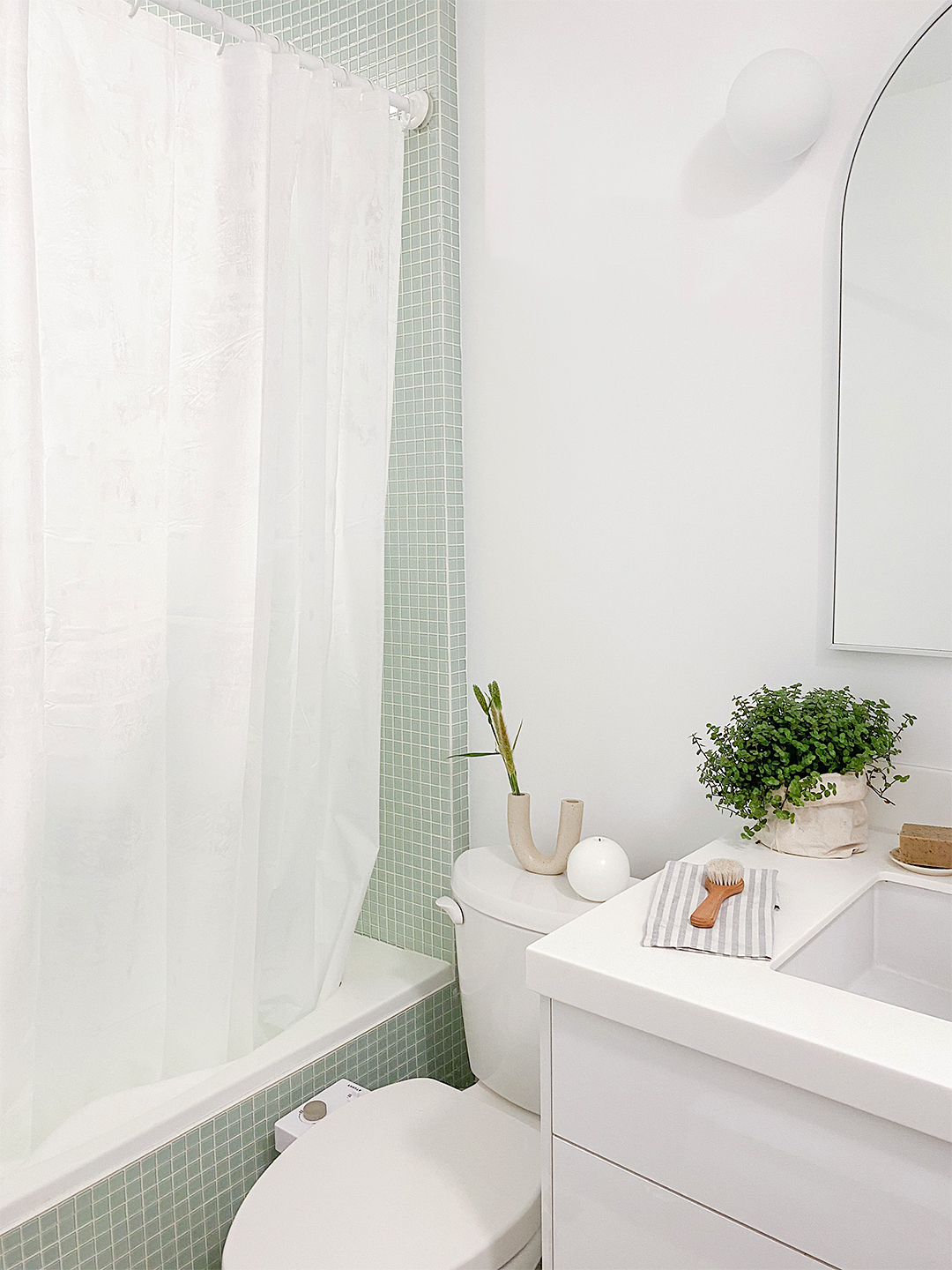 Alison and Trevor have charmingly dubbed their condo the Beach House because it’s walkable to one of the city’s most popular beaches. “Our place is often full of sand,” says Alison with a laugh. Because they tried to work with as much of the existing home as possible for budget and sustainability reasons, they kept the renovations light. They painted the walls white, replaced the formerly mismatched floors with white oak (it hides the sand and creates a sense of cohesion that makes the home feel bigger), and refaced the existing gas fireplace with fluted tile. Eventually, Alison wants to build a flex wall (or some sort of solid divider) in the kids’ now-shared bedroom to offer them more privacy as they get older. “They only just started asking, ‘When do I get my own room?’” she says.