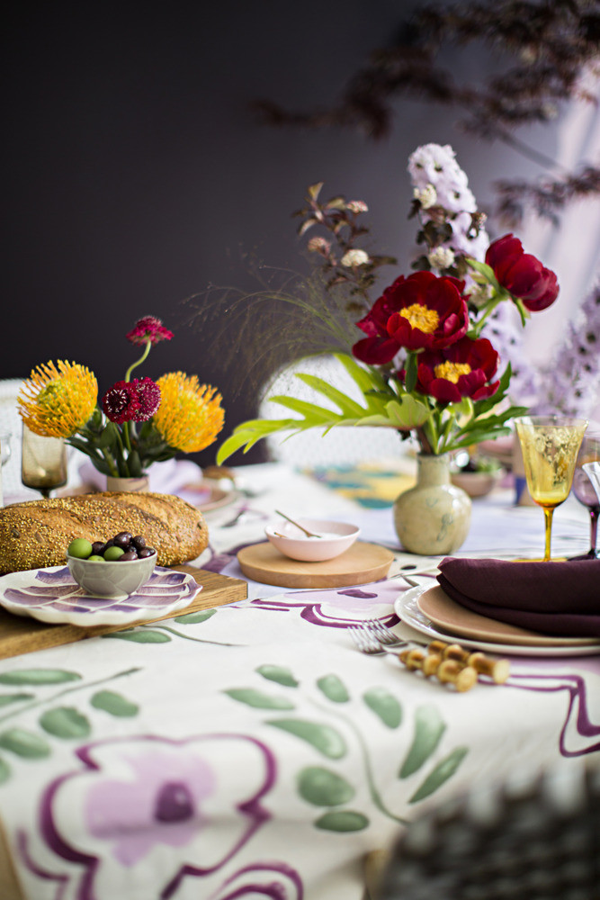 Skip the broad traditional setting with silverware to the right and left of your plate. It looks fun and unique and saves you much needed real estate.